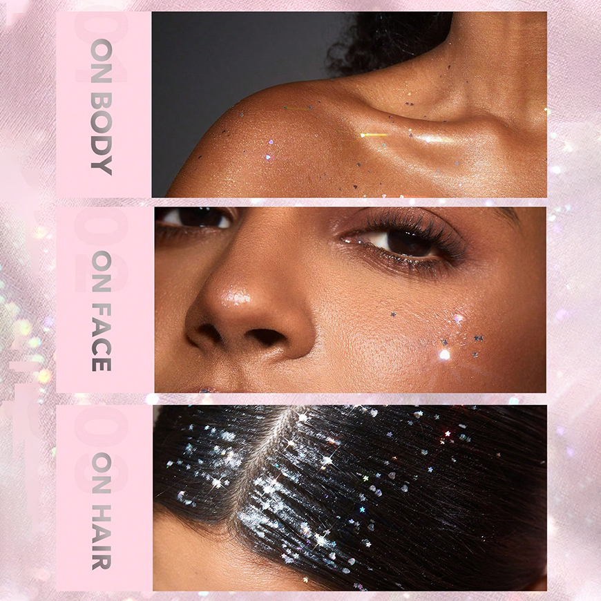 - درخشش خیرهکننده: این هایلایتر با ذرات اکلیل درشت به شکل ستاره و قلب، جلوهای چشمنواز و منحصر به فرد به بدن شما میدهد.