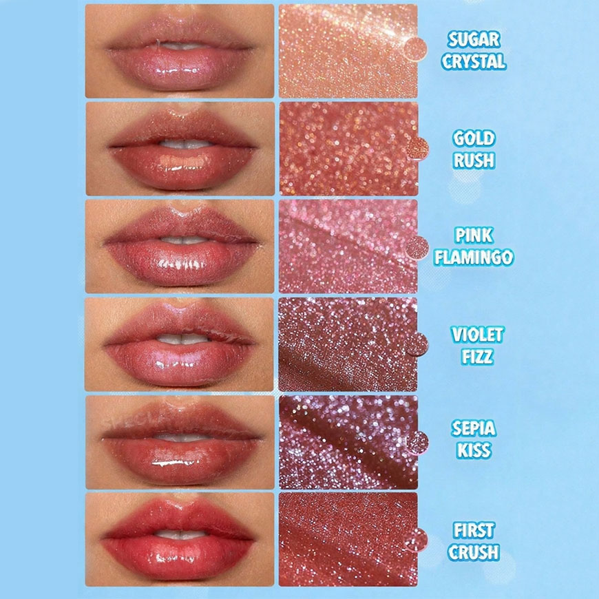 First Crush ,Gold Rush ,Pink Flamingo ,Sepia Kiss ,Sugar Crystal ,Violet Fizz |