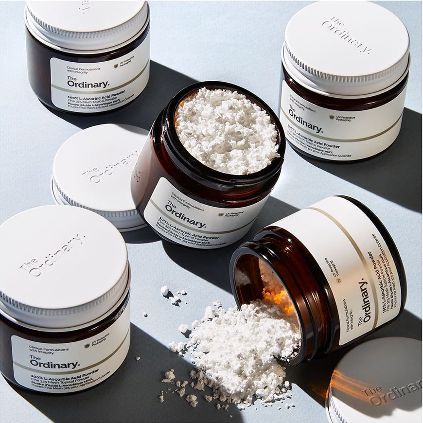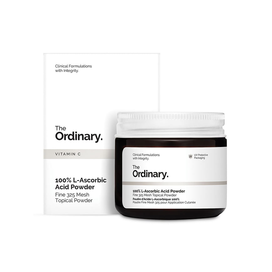 ویتامین C یک آنتی اکسیدان با قابلیت روشن کردن پوست صورت و ضد چروک و پیری پوست صورت است ولی به دلیل اینکه ویتامین C ممکن است باعث التهاب و قرمزی پوست صورت شود خیلیها نمیدانند چه درصدی از ویتامین C را باید استفاده کنند یا محصول آنها انقدر درصد کمی دارد که اصلا تاثیری روی پوست صورت نمیگذارد. پودر ال اسکوربیک اسید اوردینری که یکی از مشتقات ویتامین C است صد در صد خالص بوده و شما میتوانید از ترکیب این پودر با سرمها و مرطوب کنندههای مختلف از قدرت فوق العاده ویتامین C نیز بهره مند شوید و به هر مقدار که دوست دارید آن را در سرم خود ترکیب کنید. این محصول به دلیل اینکه خیلی ریز پودر شده به سرعت با محصولات و سرمهای پایه آب حل شده و به دلیل اینکه به صورت تازه حل و فعال میشود، ویتامین C آن از بین نرفته و بیشترین کارایی را برای شما دارد.