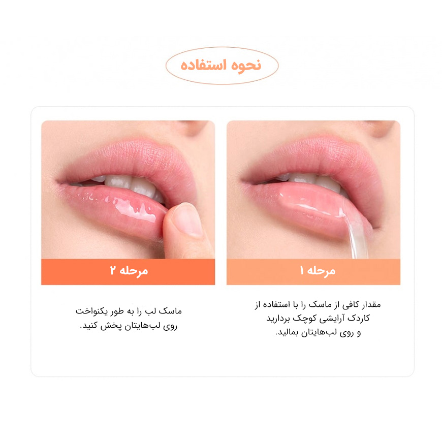 - برای استفاده به عنوان ماسک شب، قبل از خواب مقدار مناسبی از محصول را با استفاده از کاردک مخصوص یا انگشت تمیز روی لبها بمالید.